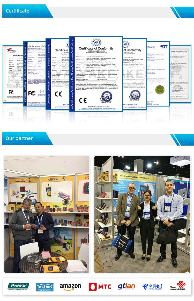 SHENZHEN NOYAFA TECHNOLOGY CO., LTD is a manufacturer set up in 2006 and based in Shenzhen,China, supplying cable tester, wire tracker, fiber tester, laser distance meter, CCTV tester and other test equipment. After years of development, the company has created a wealth of experience in sales and after-sales service team. Manufacturers and users in the formation of a very high reputation. At present, our products are exporting to all over the world, especially to Europe, Asian. No matter where of when, customer satisfactory is our eternal pursuit and goal.